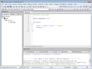 Code::Blocks đã tạo cho bạn một chương trình đơn giản có nhiệm vụ hiển thị lên màn hình: “Hello world!”.